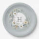 Sage Green Monogram Boho Flowers Personalised Paper Plate