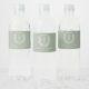Sage Green Monogram Botanical Wedding Floral Crest Water Bottle Label
