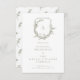Your classic vintage botanical floral monogram crest reception card to invite your guests to the reception or rehearsal dinner in absolute classic style for a romantic outdoor, garden-inspired reception or just a simple love of florals and botanicals with its clean, classic element of design elegance and text typography by Phrosne Ras Design. Definitely the feature and true stand out is the floral wreath.