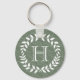 Sage Green Monogram Elegant Modern Foliage Wreath Key Ring