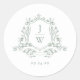 Sage Green Monogram Floral Crest Elegant Wedding Classic Round Sticker