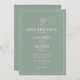 Announce your special day with sophistication using our Sage Green Monogram Modern Script Save the Date Invitation. This beautifully crafted invitation features a luxurious sage green and white palette, perfect for any formal affair. The elegant calligraphy script and classic monogram design add a touch of refinement and charm, making it an ideal choice for informing your guests of your upcoming celebration.