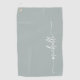 Modern Elegant Sage Green Monogram Name Script Signature Custom Personalised Golf Towel. This delicate minimalist plain colour design featuring first name in a pretty hand lettered style swash tail font calligraphy (or typography) on sage green or dusty green colour background. These are easy to customise it. Great stylish feminine birthday gift, also for mother’s day, bachelorette party, anniversary, wedding, bridal shower and It’s for the girl who loves unique clean minimalist things.