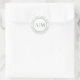 Simple Minimalist Sage Green and White Round Monogram Address Sticker.