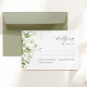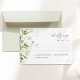 Delicate foliage, airy white blooms, and balanced negative space create a calm, elegant response card that blends natural texture with refined wedding stationery design.