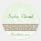 An ornamental brown frieze against a green coloured background serves as the main graphic element for this elegant sticker. Use it to seal your wedding invitations, save-the-date or engagement announcement; seal favour bags or just stick it anywhere. Customise with your own names and event date. Matching cards, postage and favours available. See my store for other colour options.