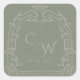 Sage Green Ornate Arch Botanical Wedding Envelope Square Sticker