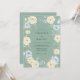 This design features a serene sage green backdrop adorned with a lush border of creamy white roses and dusty blue blossoms. Delicate watercolor greenery and soft white accents create a romantic, botanical atmosphere perfect for a seasonal event. The painterly style evokes a sense of timeless elegance and natural beauty.