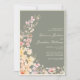Set the perfect tone for your romantic celebration with this elegant floral wedding invitation. Featuring a sophisticated sage green background adorned with delicate pink, peach, and cream floral accents cascading gracefully along one side, this design exudes timeless charm. Ideal for garden, rustic, or spring-themed weddings, it beautifully balances modern elegance with a touch of vintage flair. Personalise it effortlessly with your event details and create an inviting keepsake for your guests.