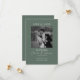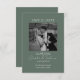 Share your exciting save the date news with our doubled sided flat minimalist sage green photo save the date card with QR code. This elegant sage green save the date invitation features a classic, contemporary design with white hand-written cursive fonts. The front of the save the date includes editable text boxes to personalize with your names, wedding date, wedding venue location and space to add your favorite couple photograph. The back of the save the date invite includes the option to upload your unique wedding website qr code, so your wedding guests can find out more information about your wedding day.
