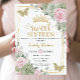 Sage Green Pink Floral Butterflies Gold Sweet 16 Invitation