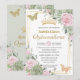 Sage Green Pink Floral Butterflies Quinceañera Invitation