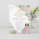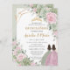 Sage Green Pink Floral Quinceañera Twins Butterfly Invitation
