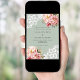 For an elegant and romantic wedding. A sage green coloured background decorated with pink and rose gold florals, roses and lace. Personalise and add your names and details.