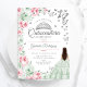 Sage Green Pink Roses Floral Quinceanera Invitation