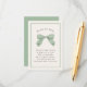 Hand painted bow with subtle plaid in light green and ivory; editable text, border and background colour on front and back. Add a QR code if desired to the backside for registry, website etc
