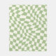 Sage Green Psychedelic Chequered Groovy Grid Patte Fleece Blanket