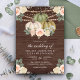 Sage Green Pumpkin Dusty Peach Floral Wood Wedding Invitation
