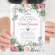 Sage Green Quinceañera Pink Silver Crown Butterfly Invitation