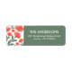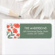 A single hand-painted red flower gives this watercolour floral return address label its unique character. The design feels relaxed and personal, offering a subtle splash of colour without going formal. Positioned on the left hand-side of the label, the floral accent keeps your address visible - on top of a sage green surface - while adding a thoughtful finishing touch to your mail. Ideal for everyday mail, this return address label works comfortably all year-round and can also be used during the holiday season.