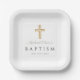 Sage Green Religious Cross Boy Baptism Paper Plate