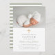 Personalised Sage Green Religious Cross Photo Baptism Invitation.