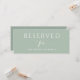 Elegant Light Sage Green Romantic Wedding Reserved Sign: Hang these wedding signs from chairs, or simply place flat on a chair seat. This wedding reserved sign features elegant & romantic typography in monochromatic shades of sage green. Change the colours and fonts to anything you like! Punch holes in the top on each side and hang from wedding chairs or pew...or simply lean on a chair place along your table decor.