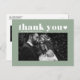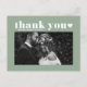 Send thank you with this customisable photo thank you postcard. It features retro bold typography and heart overlay. This sage green thank you card will be perfect for a variety of events, such as weddings and graduations. Personalise by adding your favourite horizontal photos.