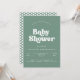 A trendy baby shower invitation with the headline "baby shower" in white retro font on a muted teal background. Personalise with your details in white sans serif font. The reverse features a polka dot pattern in teal and white.