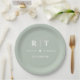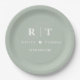 Sage Green Roman Numerals Minimalist Monogram Paper Plate