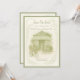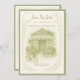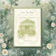 This sage green wedding save the date invitation captures the romantic atmosphere of a cosy garden café, framed by soft botanical details and vintage charm. The gentle sage tones bring a sense of calm, elegance, and timeless beauty, making it ideal for couples who dream of a wedding inspired by nature, outdoor venues, or rustic courtyard settings. The delicate bicycle with flowers, leafy border, and charming café backdrop create a warm and welcoming scene that feels both intimate and refined.