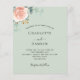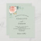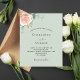 A sage green background. Decorated with a rose gold and blush pink floral, rose flower and green watercolored eucalyptus leaves, sprigs, greenery and faux gold sprigs. Personalise and add your names and wedding details.