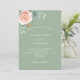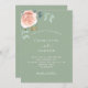 A sage green background. Decorated with a rose gold and blush pink floral, rose flower and green watercolored eucalyptus leaves, sprigs, greenery and faux gold sprigs. Personalise and add your names and wedding details.