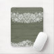 Sage Green Rustic Wood & White Lace Lacy Farmhouse Mouse Pad