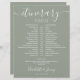 This stylish grey and white wedding itinerary schedule timeline can be personalised with your wedding details in chic lettering on a sage green background. Designed by Thisisnotme©