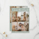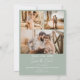 Modern simple and elegant brush script with 6 photos collage grid wedding save the date on muted sage green.