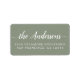 Sage Green Script Family return address label featuring a soft sage green background with white handwritten script for the family name and a clear, easy-to-read address below. The muted tone creates a calm, modern look while keeping your mailing details crisp and legible. Ideal for everyday mailing, moving announcements, holiday cards, and business correspondence with a refined, cohesive style. Easily personalise with your details.