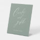 Modern script minimalist wedding cards and gifts sign in sage green and white, simple and elegant.