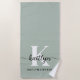 This simple, elegant sage green beach towel with your first name in a trendy script font in black, your first initial in a modern cap font in white, and your full name in CAPS in black is perfect for you. It's stylish and trendy and yet very classic. Get a bunch for the beach or for your pool and deck area. They'll come in so handy.