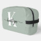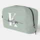 This simple, elegant sage green toiletry bag with your first name in a trendy script font in black and your first initial in a modern cap font in white is perfect for you. It's stylish and trendy and yet very classic. It will be fabulous for school, the gym, work, your car - will make keeping your makeup or toiletries all in one place when you're away from home.