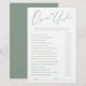 Entertain your guests with this fun "over or under" bridal shower game, features stylish modern script and text in sage green and white, simple and clean, great for bridal shower, and wedding parties.