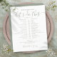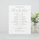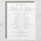 This simple elegant sage green let's do this' wedding schedule timeline can be personalised with your wedding details in modern white lettering. Designed by Thisisnotme©