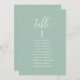 Help your guests find their table with this elegant modern seating plan cards with guests names. Double sided cards so guests can look from both, front or back for their names. Clear space all around giving you the liberty to use clips or punch hole for hanging displays, or use table holder/frame. Sage green background and white text. Modern hand written calligraphy details. Several colour options. Have all table numbers in same colour or mix colours according to your event's colour theme.