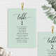 Help your guests find their table with this elegant sage green modern seating plan cards with guests names. Double sided cards so guests can look from both, front or back for their names. Clear space all around giving you the liberty to use clips or punch hole for hanging displays, or use table holder/frame. Sage green background and black text. Modern hand written calligraphy details. Several colour options. Have all table numbers in same colour or mix colours according to your event's colour theme. Part of our "Earth Tones Event Signs and Products" collection with a variety of coordinating products available, including table number cards and menus.