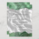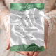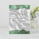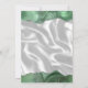 The top and bottom edges of this elegant modern wedding invitation feature a sage green watercolor agate border trimmed with faux silver glitter. The customisable text combines handwriting, sans serif and italic fonts in charcoal grey on a background image of white silk. The reverse side features a matching sage green agate and white silk design.