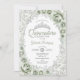 Sage green silver Quinceanera celebration invitation. Features, script font, silver butterflies, watercolor roses and tiara. Perfect for an elegant princess style glam celebration. Personalise with your own details. Printed Zazzle invitations or instant download digital printable template.