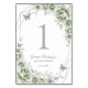 Sage green silver and white Quinceanera celebration table number cards. Features, script font, silver butterflies, watercolor roses and tiara. Perfect for an elegant princess style glam celebration. Personalize with your own details. Printed Zazzle invitations or instant download digital printable template.