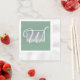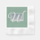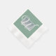 A sage green background featuring a silver faux glitter rectangle with a white border accented by a Monogram. Add names and date as you like. This makes for a lovely wedding or event table napkin. Ready for you to personalize.