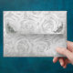 Searching for beautiful stationery to complete your sage green princess themed celebration? Transform simple envelopes into storybook treasures with this easy to edit DIY template. Customise the 5x7 envelope design with your own return address in just minutes. This luxurious template showcases unique, original artwork by Raphaela Wilson, which includes an elegant vintage crown carriage, a clock nearing midnight, and soft watercolor textures. The floral inner liner is adorned with delicate sage green roses, creating a royal botanical aesthetic. Accents of faux silver confetti and whimsical butterflies add a subtle shimmer, setting the scene for a sage green quinceañera, fairy tale wedding, Cinderella themed sweet 16 birthday party, once upon a time bridal shower, baby shower, and other magical events. The back flap features additional sage green roses, graceful foliage with silver highlights, and shimmering confetti details. Choose from customisable calligraphy script and modern typography to match your theme. If you prefer decorative round seals or stickers instead of printed addresses, you can easily remove the address field entirely. Enjoy! Category: horse drawn carriage pre addressed wedding return address envelopes; cute butterfly princess wedding envelopes; and sage green floral 5x7 envelopes (rsvp card size available). Sage green quinceanera theme colours: light green, sage green, seafoam green, light grey, dark grey, faux metallic silver, black and white.