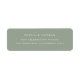 These minimalist and elegant wedding return address labels feature modern white text on a sage green background. A simple and stylish look.